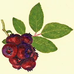 Redskin blueberry is an albino, where the berries become red on the side exposed to the sun. USDA botanist Frederick Coville released the variety as a horticultural curiosity that might be desirable for the home garden.