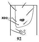 | Prespiracular shield crescent shaped extending below spiracle (Fig. 92); crochets biordinal on mesal aspect (Fig. 93)..................................................................................................Lineodes integra (Zeller) Distribution: Western Hemisphere Hosts: 2006: Capsicum sp., Lavandula sp., Physalis peruviana, Physalis philadelphica, Solanum lycopersicum, Solanum torvum, Thymus sp. pre-1998: Solanaceae, including eggplant | ![]() | |