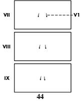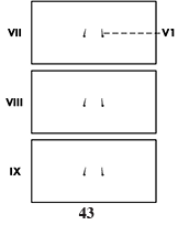 | V1 on abdominal segment 7 as far apart as on segment 9 (Fig. 43); body without longitudinal dark bands....................................................................................................Phycitinae, Pyralinae.......20 | ![]() | |