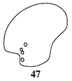 | Head with only 4 distinct ocelli (ocelli I and II fused and ocellus VI usually missing) (Fig. 47); A9 with one subventral seta (Fig. 48) .............................................................................................................................Pyralis farinalis Linnaeus Distribution: nearly cosmopolitan, does not occcur in Hawaii Hosts: 2006: Allium sp., Alpinia purpurata, foodstuffs, Musa sp., Narcissus tazetta, packing, Triticum sp. pre-1998: dried vegetable products Note: the packing is usually associated with polished monuments, marble blocks, and tiles in wood crates | ![]() | |