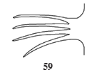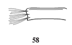 | Lateral gills on body segments (Figs. 58, 59) .................................................................................Acentropinae.......Parapoynx diminutalis Snellen Distribution: southeastern Asia, Africa, Australia, Europe, U.S. Hosts: 2006: Cabomba caroliniana, Dracaena fragrans, Egeria densa, Hygrophila sp., Ludwigia sp., Mayaca fluviatilis, Rotala sp., Vallisneria sp., Vallisneria americana pre-1998: Cabomba sp., Hydrilla sp., Limnophila sp., Myriophyllum sp. Note: Fig. 59 is an enlargement of one lateral gill, note base; P. fluctuosalis is adventive in Hawaii; Acentropinae = Nymphulinae; see Goater 1986 | ![]() | ![]() |