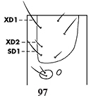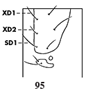 | Prothorax with seta XD2 closer to seta SD1 than to seta XD1 (Fig. 97); crochets triordinal (Fig. 98) .....................................................................................................................Duponchelia fovealis Zeller Distribution: Europe, Middle East, Africa Hosts: 2006: Annona sp., Amaranthus sp., Anemone sp., Anthurium sp., Begonia sp., Beta vulgaris, Capsicum sp., Capsicum annuum, Limonium sp., Mentha sp., Ocimum basilicum, Origanum majorana, Paeonia sp., Sarracenia sp., Solanum lycopersicum, Tanacetum sp. Note: SV1 pinaclum elongate on all thoracic segments, darkly sclerotized pinacullum 3X as long as wide poserior to the seta. Commonly inercepted on peppers from the Netherlands, but has been found in a wide variety of hosts including cut flowers | ![]() | |