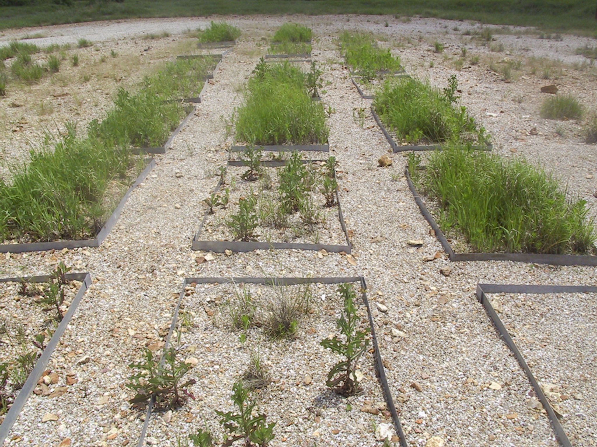 A plot showing varying vegetation that occurred after different levels of beef cattle manure compost amendments. Plant growth suffered when no compost was used but excelled when high amounts were used.